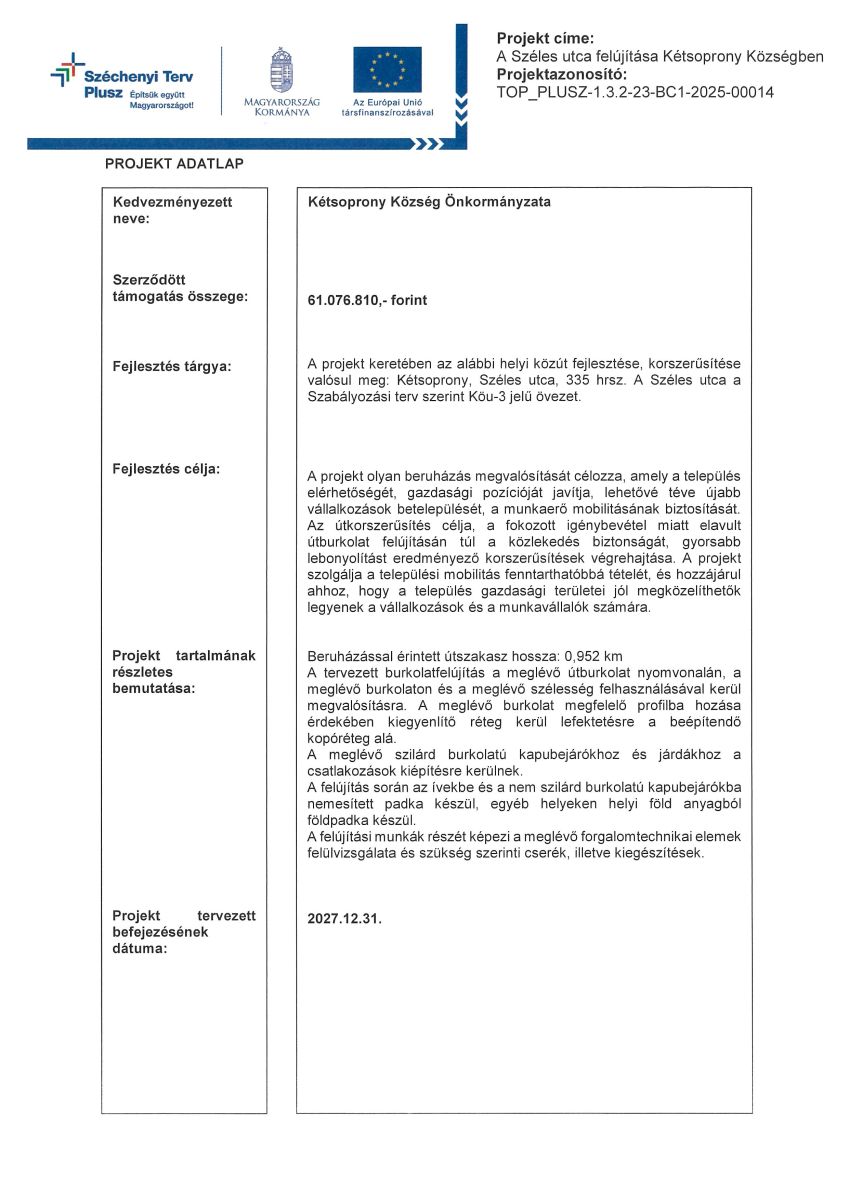 TOP_PLUSZ-1.3.2-23-BC1-2025-00014 A Széles utca felújítása Kétsoprony Községben